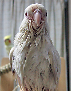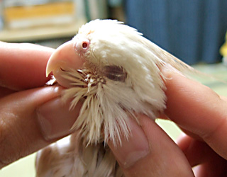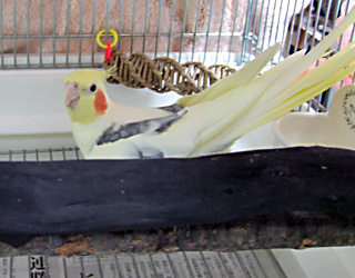 夜の放鳥時も、パパにあっさりカゴから連れ出されたポリア。