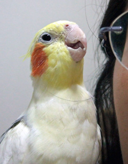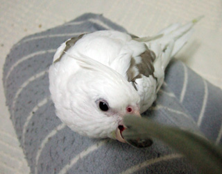 いつもは止まり木で遊ぶのに、今日は膝によじ登ってきて…