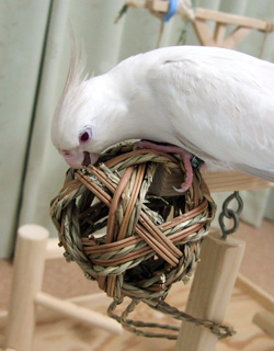 コルちゃん、スッと自分の羽を用意して遊んじゃうのすごいです~!