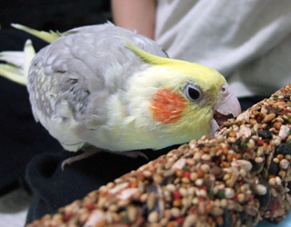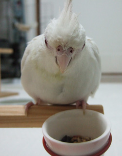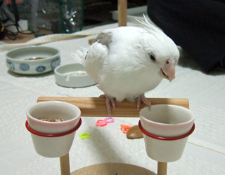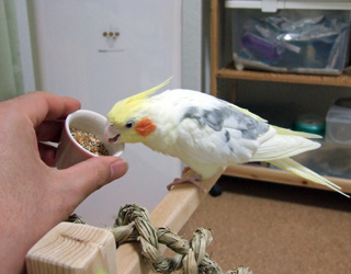 いつも放鳥中、落ち着いてゴハンが食べられないフィロに