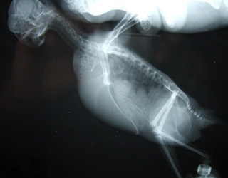 先生とパパとママの三人掛りで保定して、