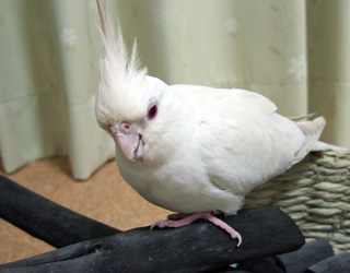 夜の放鳥時は、いつもポリアにカゴを乗っ取られて