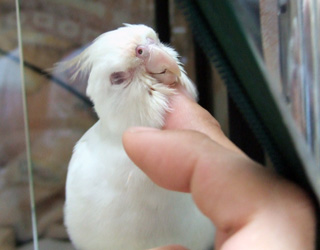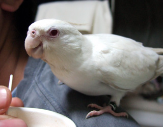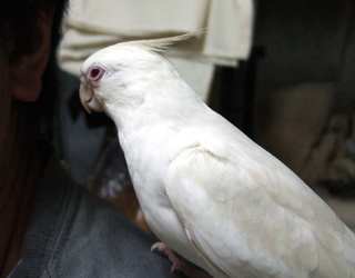 専属エステティシャンが嘴と顎の汚れを丁寧に落としています。