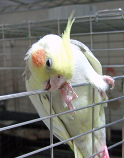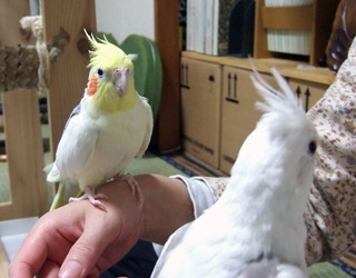 朝も夜も、放鳥時間になるとカゴから飛び出してきました